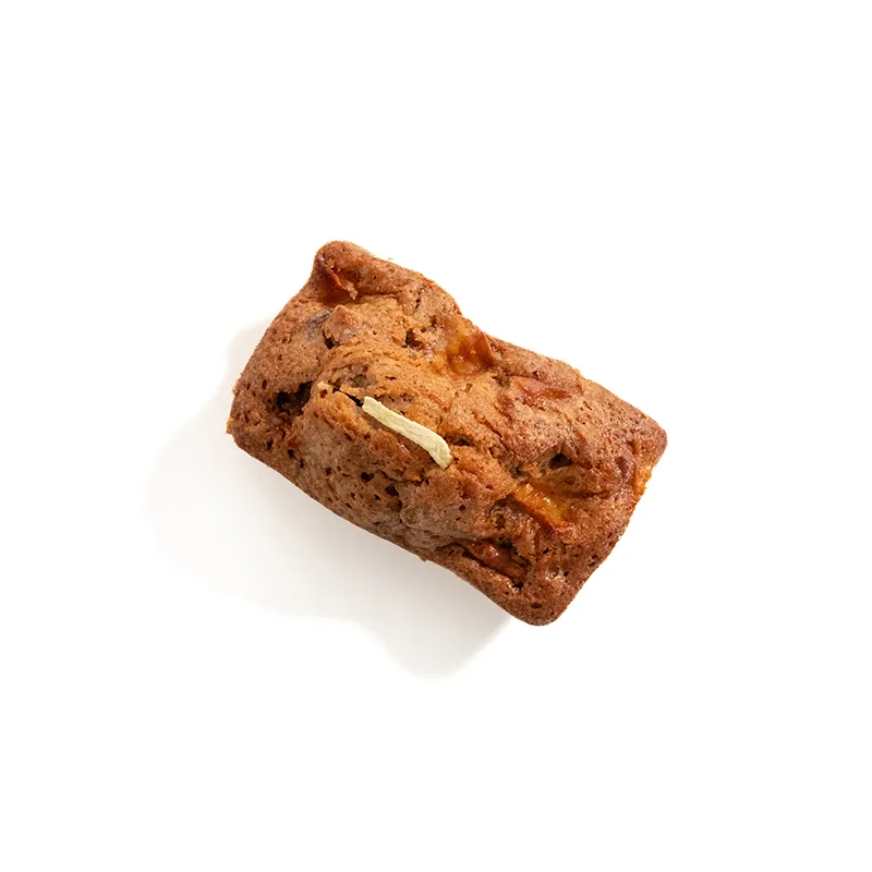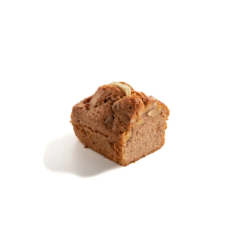 مناسب برای یک نفر. کیک اسفنجی لطیف با تکه‌های گردو و برش‌های مکعبی سیب و دارچین که با برشی از سیب تازه تزئین می‌شود.